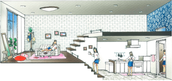 吹き抜けのような感覚で床面積以上の広さを体感できます。