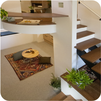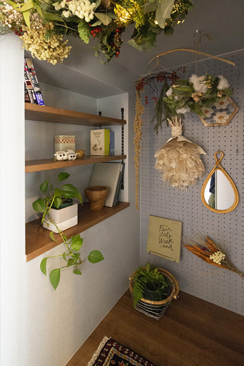 おこもり階段 本棚、有孔ボード