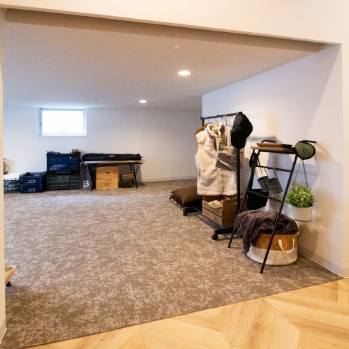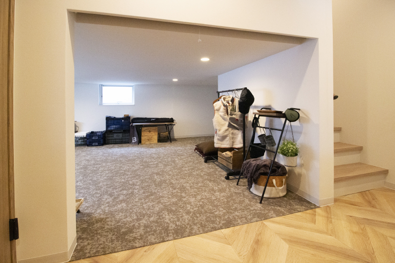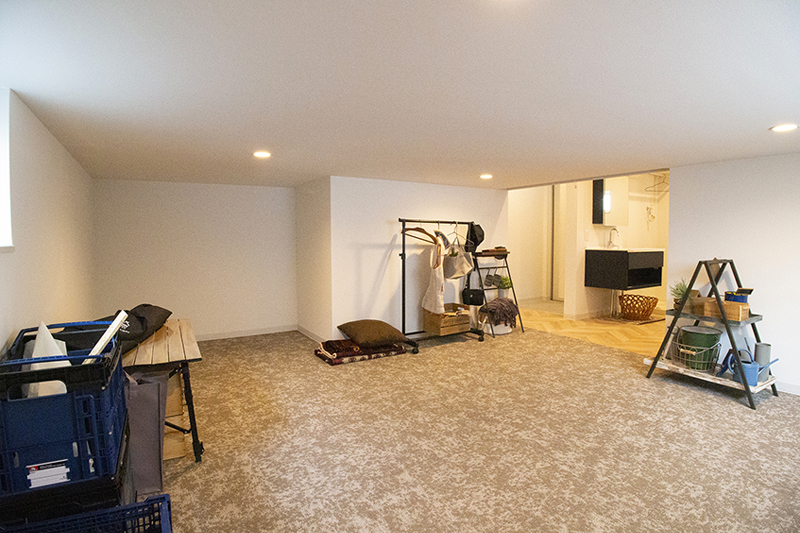 玄関を入るとすぐ前に大容量のつまえる空間があります。