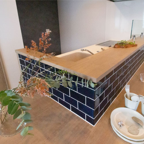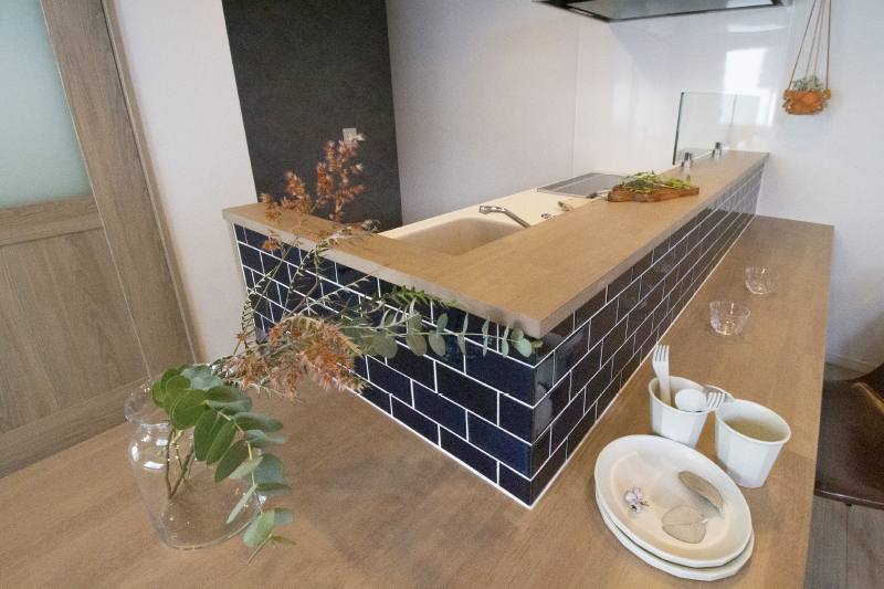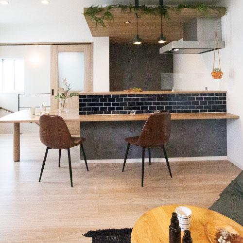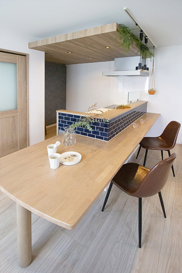 キッチンはカウンターとダイニングテーブルが一体化し