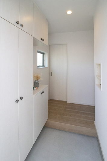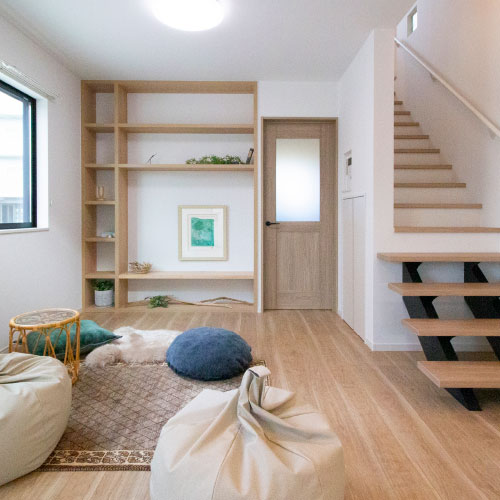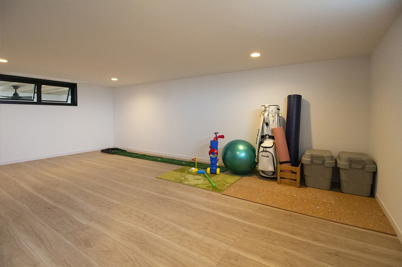 2フロアに設けた大容量つまえる空間は、家族と個を楽しむそれぞれのフロアの間で